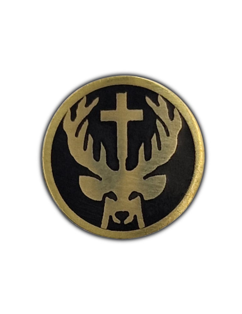 A kép tűk, más néven dekoratív kés tűk, kis fém darabok, amelyeket a nyél és a penge összekapcsolására használnak. Szerkezeti funkciójuk mellett esztétikai szerepet is betöltenek, egyedi megjelenést adva minden késnek. A felajánlott kép tű "Hubertus Szarvas" sárgarézből és epoxi gyantából készült.