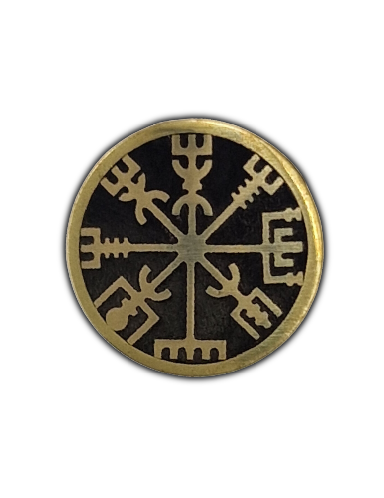 Le spine decorative, conosciute anche come spine per coltelli decorative, sono piccoli pezzi di metallo utilizzati per collegare il manico alla lama. Oltre alla loro funzione strutturale, svolgono anche un ruolo estetico, conferendo a ciascun coltello un aspetto individuale. La spilla offerta "Vegvisir" è realizzata in ottone e resina epossidica.